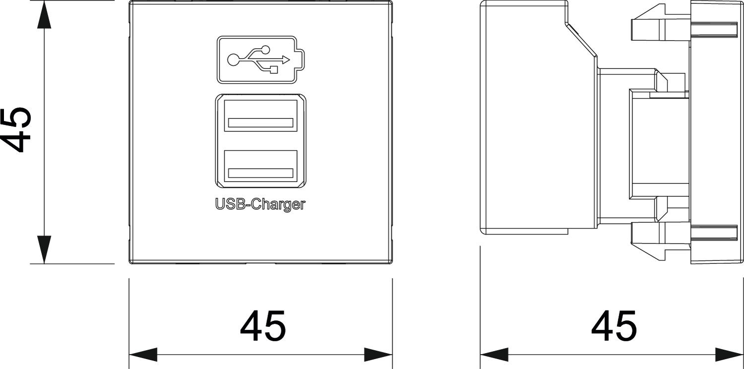 ProductbeschrijvingUSP-oplader met twee USB type A bussen, voor het opladen van 1-2 mobiele apparaten, maximale laadstroom 1x 2100 mA of 2x 1050 mA.