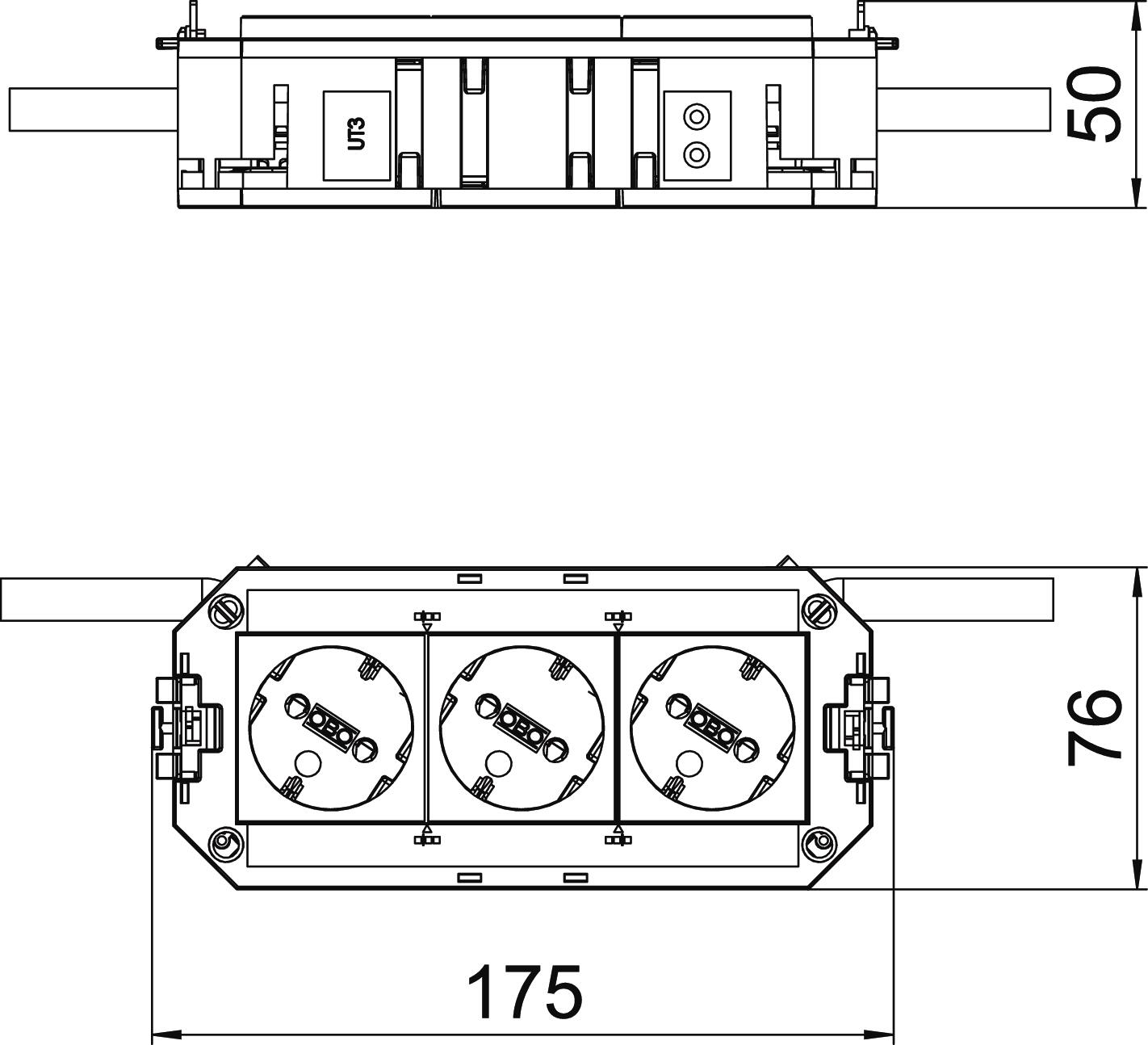 ProductbeschrijvingDe aansluitklare universele drager UTC3 beschikt over 2 voorgeïnstalleerde 33°-contactdozen met randaarde in wit met 16 A en een voorgeïnstalleerde 33°-contactdoos met randaarde in oranje met 16 A. Passend bij de verbindingskabels VL en de inbouweenheden met nominale grootte 2, 4, R4, 6 en R7.