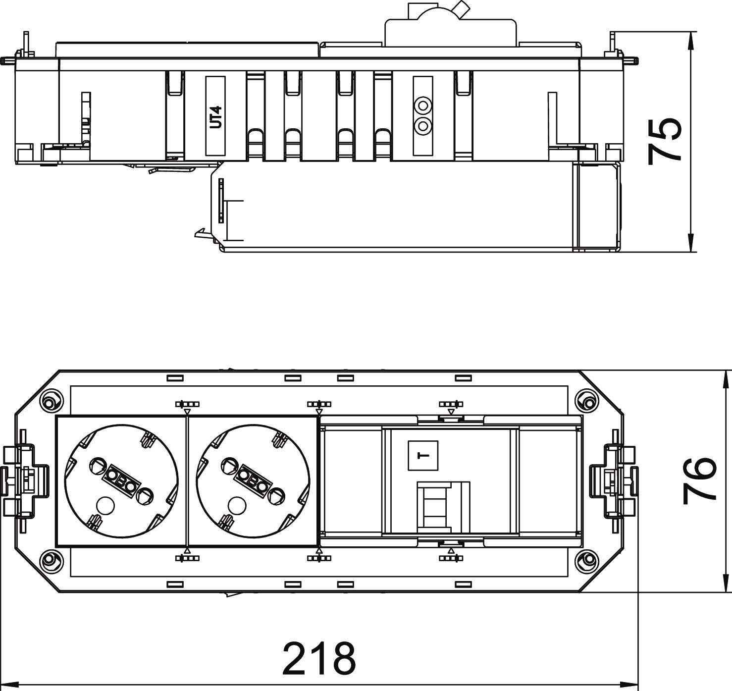 UTC4 FL met 2 contactdozen met randaarde en FI/LS