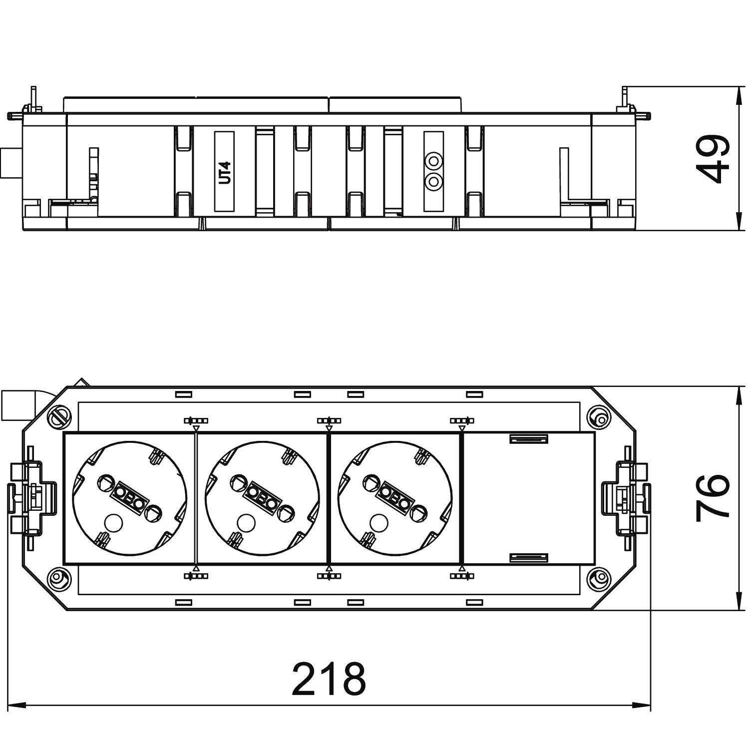 ProductbeschrijvingDe aansluitgerede universele drager UTC4 beschikt over 3 voorgeïnstalleerde 33° contactdozen met randaarde in wit en een blindafdekking voor inbouw naderhand van een installatie-apparaat uit de serie Module 45.