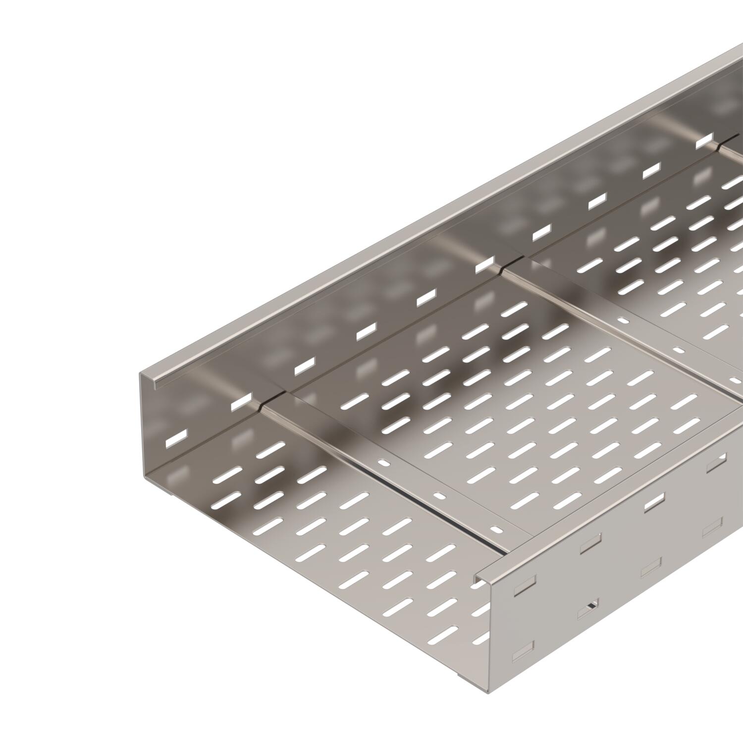ProductbeschrijvingVerspankabelgootsysteem, geperforeerd, met een zijhoogte van 110 mm.