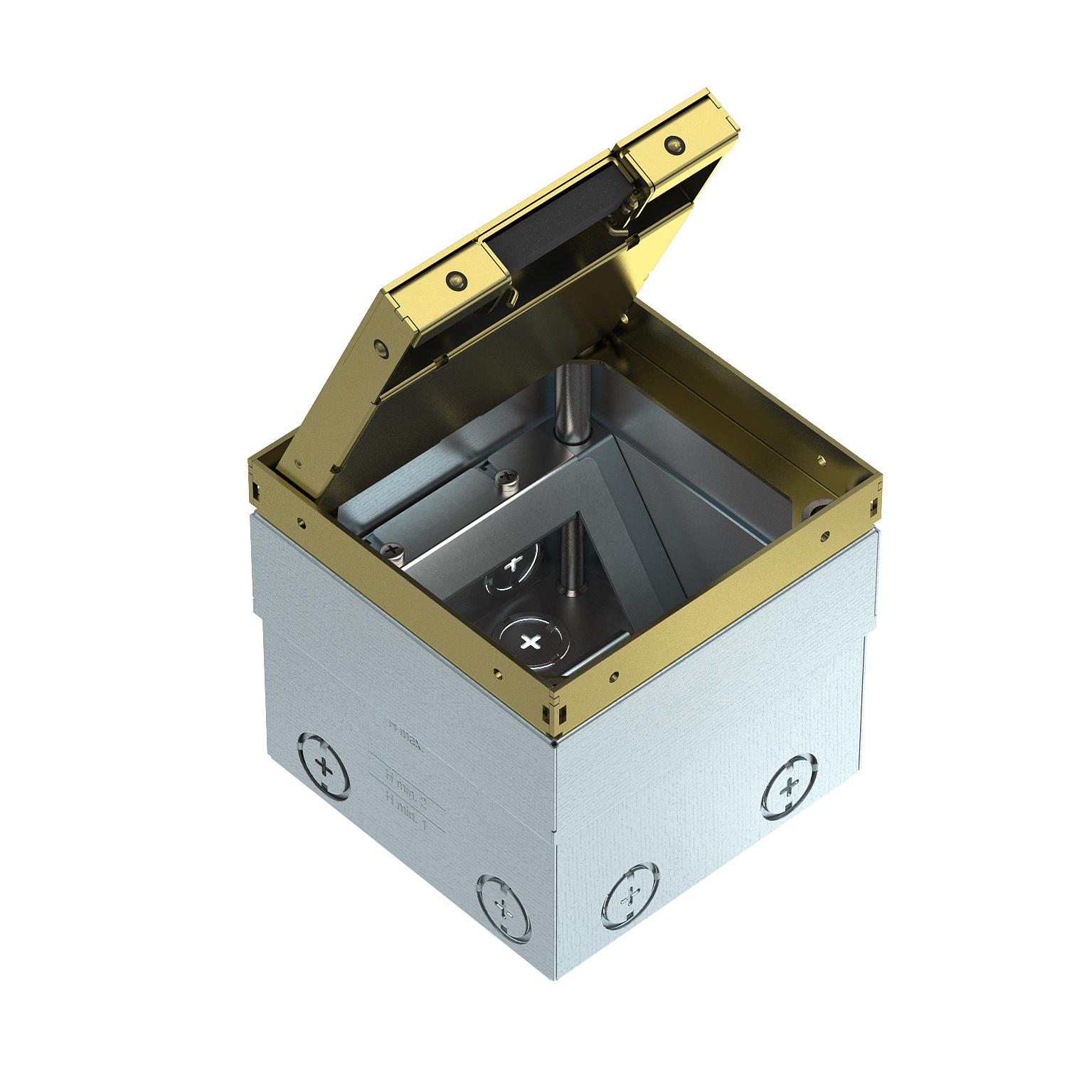 Vloerdoos UDHOME2, met snoeruitlaat, met vloerbekledingsuitsparing, niet uitgerust, messing