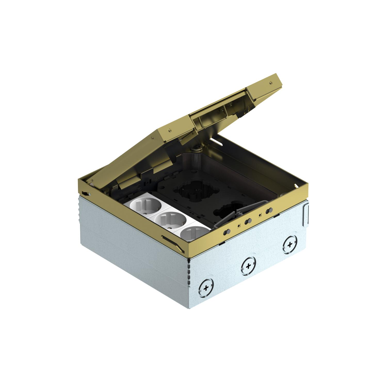 Vloerdoos UDHOME4 met universele drager UT3, 3-voudige, messing
