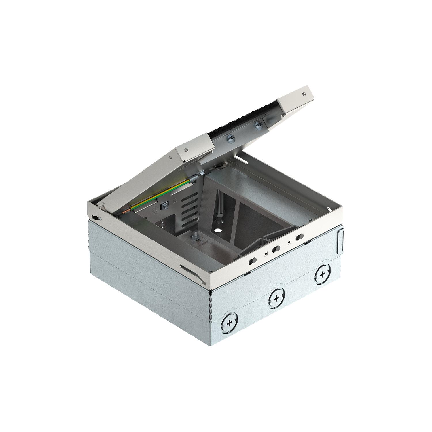 ProductbeschrijvingVierkante vloercontactdoos voor toepassing in droog onderhouden holle vloeren en in dekvloeren binnen.