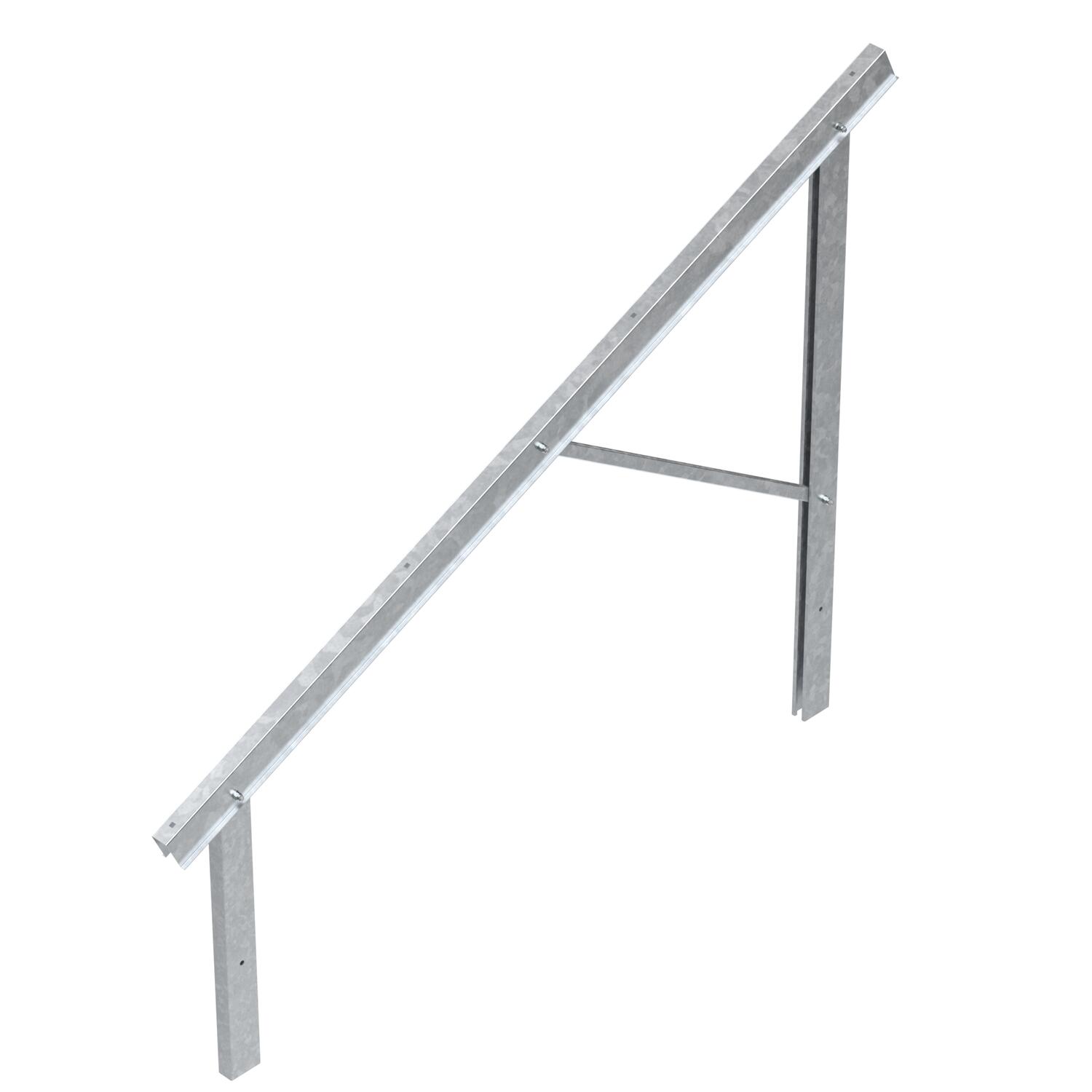 ProductbeschrijvingVoorgemonteerde drager in kleine, gemiddelde of grote uitvoering voor monteren van fotovoltaïsche vrije-veldsystemen in combinatie met draagprofielen en eind-/tussenklemmen. Montage met inslagprofielen in de grond of met standvoeten op betonnen fundering