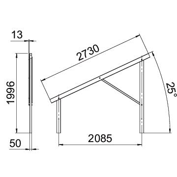 Afm. H 2 mm Breedte 91 mm CO2-voetafdruk (GWP) van wieg tot poort 70,6337 kg CO2e / 1 Stuk Dakdoorvoer vereist nee Dimensie 2517x91x1996 Geschikt voor dakmateriaal overige Hellinghoek max. 25 ° Hellinghoek min. 25 ° Hoek α 25 Hoogte 1996 mm Kabelkanaal geïntegreerd nee Kabelkanaal optioneel ja Kleur zink Lengte 2517 mm Maat l 2,08 mm Maat L 2,52 mm Materiaal staal Module length max. 1850 mm Module length min. 1600 mm Modulebreedte max. 1310 mm Modulebreedte min. 990 mm Modulehoogte max. 50 mm Modulehoogte min. 20 mm Oppervlak thermisch verzinkt Type montage fotovoltaïsch montagesysteem Vloer Uitlijning verticaal Verankering vrijstaand Verstelbaar nee - Alle typen