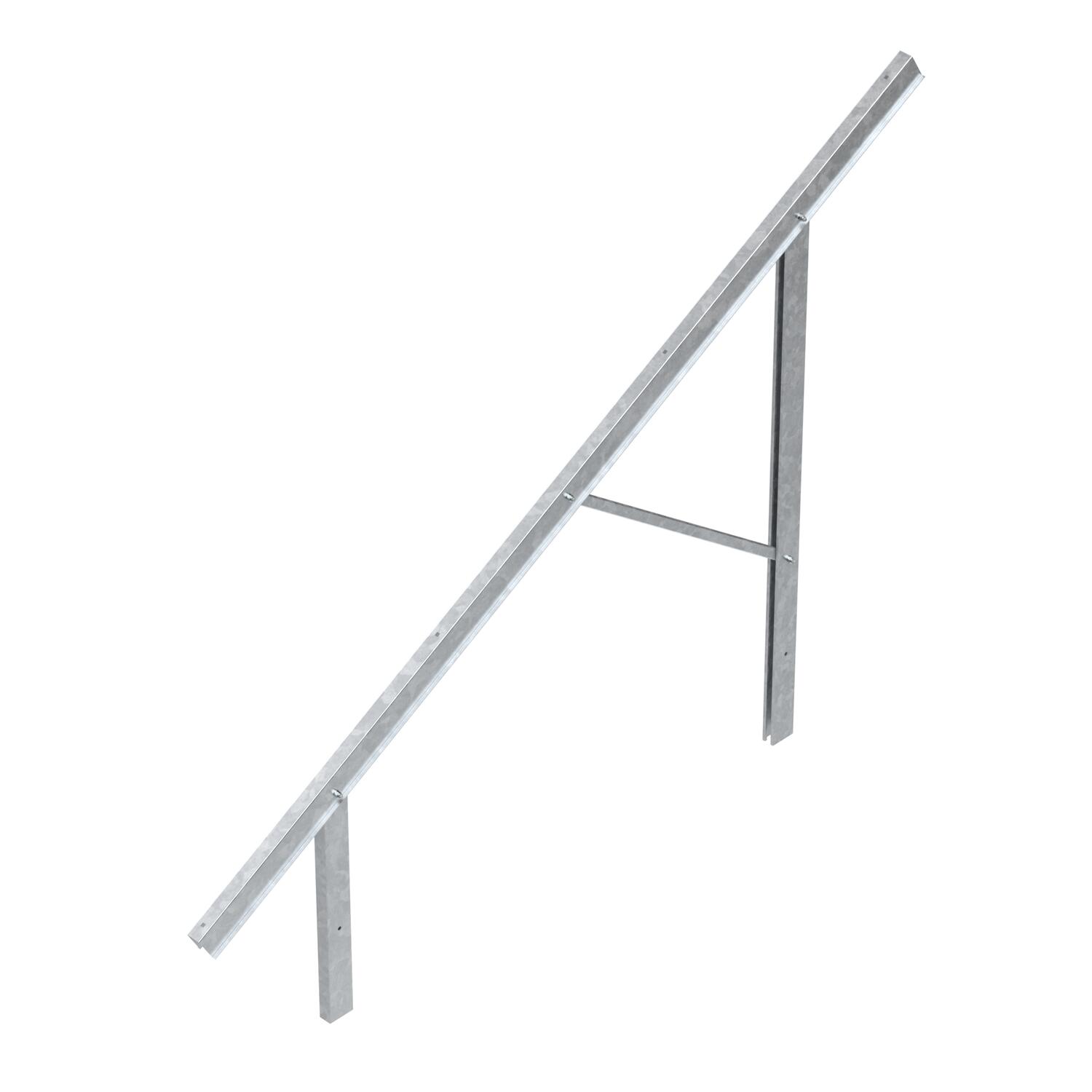 ProductbeschrijvingVoorgemonteerde drager in kleine, gemiddelde of grote uitvoering voor monteren van fotovoltaïsche vrije-veldsystemen in combinatie met draagprofielen en eind-/tussenklemmen. Montage met inslagprofielen in de grond of met standvoeten op betonnen fundering