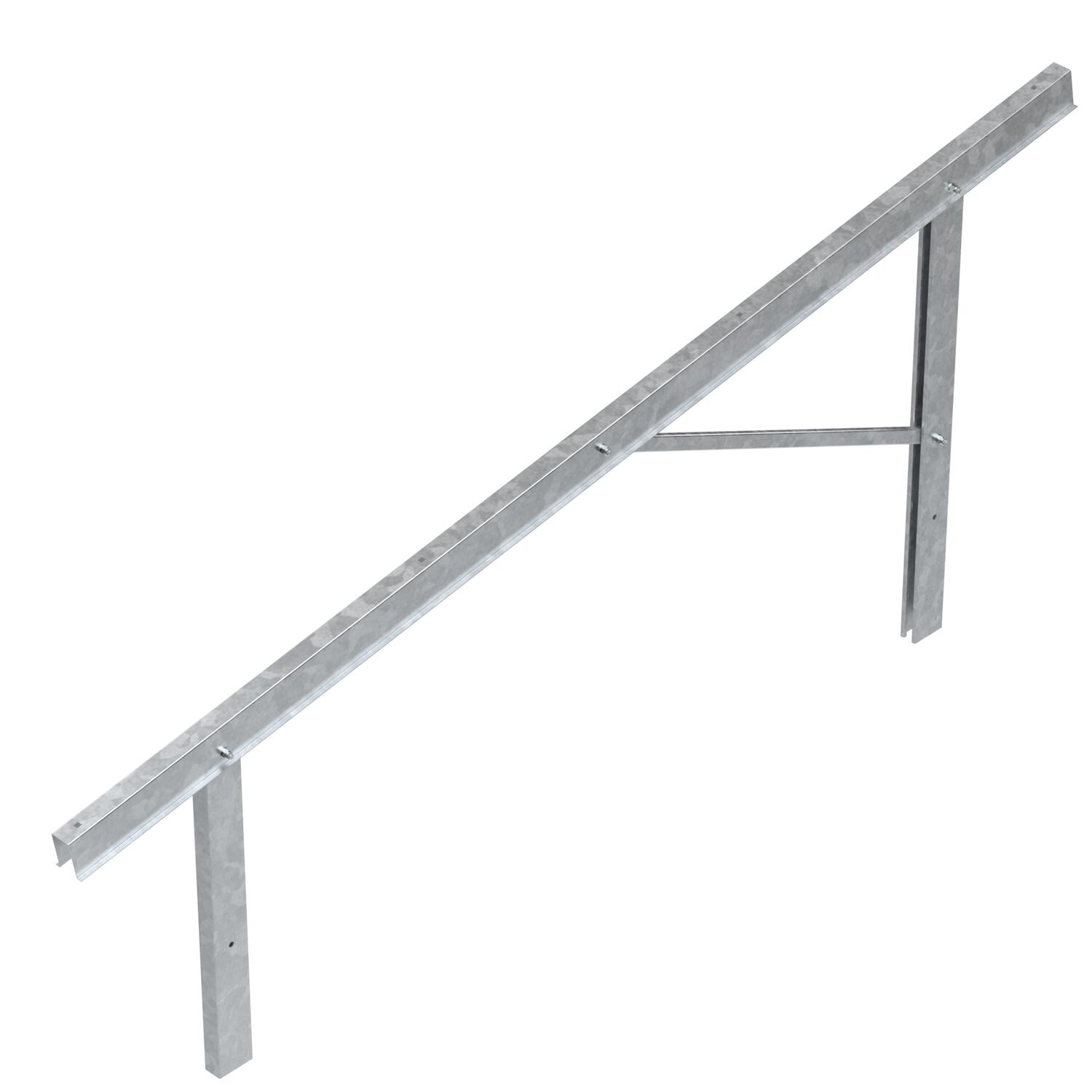 ProductbeschrijvingVoorgemonteerde drager in kleine, gemiddelde of grote uitvoering voor monteren van fotovoltaïsche vrije-veldsystemen in combinatie met draagprofielen en eind-/tussenklemmen. Montage met inslagprofielen in de grond of met standvoeten op betonnen fundering