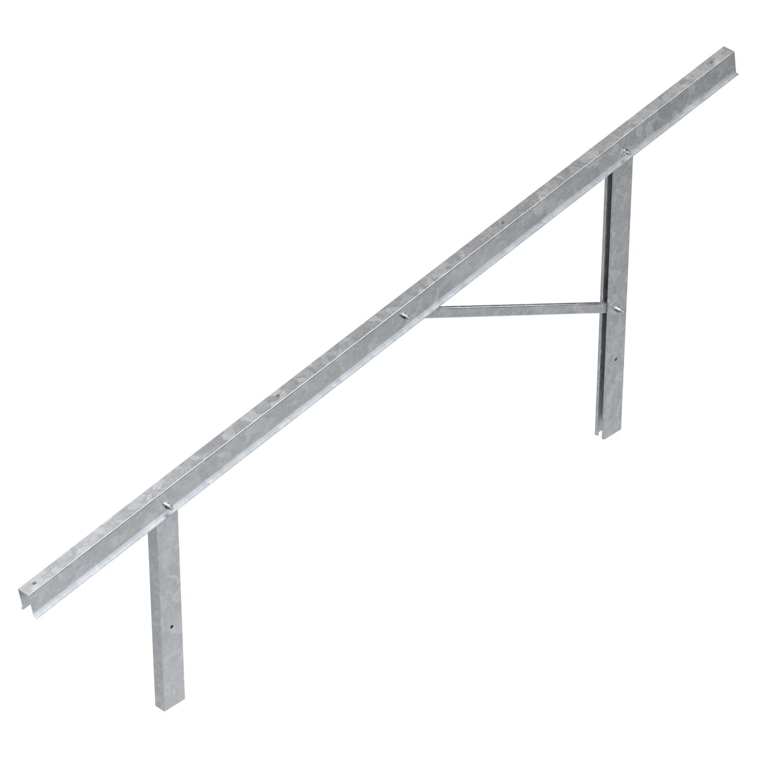 ProductbeschrijvingVoorgemonteerde drager in kleine, gemiddelde of grote uitvoering voor monteren van fotovoltaïsche vrije-veldsystemen in combinatie met draagprofielen en eind-/tussenklemmen. Montage met inslagprofielen in de grond of met standvoeten op betonnen fundering
