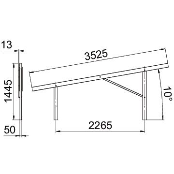 Afm. H 1,45 mm Breedte 91 mm CO2-voetafdruk (GWP) van wieg tot poort 77,357 kg CO2e / 1 Stuk Dakdoorvoer vereist nee Dimensie 3489x91x1445 Geschikt voor dakmateriaal overige Hellinghoek max. 10 ° Hellinghoek min. 10 ° Hoek α 10 Hoogte 1445 mm Kabelkanaal geïntegreerd nee Kabelkanaal optioneel ja Kleur zink Lengte 3489 mm Maat l 2,27 mm Maat L 3,49 mm Materiaal staal Module length max. 2400 mm Module length min. 2100 mm Modulebreedte max. 1310 mm Modulebreedte min. 990 mm Modulehoogte max. 50 mm Modulehoogte min. 20 mm Oppervlak thermisch verzinkt Type montage fotovoltaïsch montagesysteem Vloer Uitlijning verticaal Verankering vrijstaand Verstelbaar nee - Alle typen
