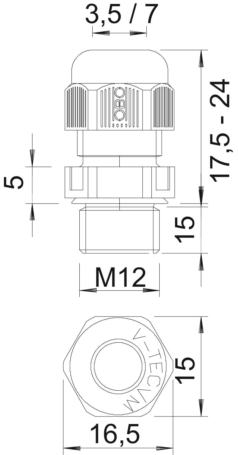 Afdichtbereik D max. 7 mm Afdichtbereik D min. 3,5 mm Afmeting e 16,5 mm Afmeting L max. 24 mm Afmeting L min. 17,5 mm Beschermingsgraad IP68 CO2-voetafdruk (GWP) van wieg tot poort 0,025 kg CO2e / 1 Stuk Deelbare wartel nee Dimensie M12 Doorbuigbescherming nee Explosiebeveiligd nee glasvezelversterkt nee Halogeenvrij ja Instabiel draaimoment 2 Nm Kleur Zwart Lengte schroefdraad 15 mm Maat L1 15 mm Maat L2 5 mm Materiaal Polyamide Meervoudig dichtingsinzetstuk nee Met borgmoer nee moeilijk ontvlambaar volgens VDE 0471/DIN 695 deel 2-1, testtemperatuur 650°C Nominale schroefdraadmaat 12 Schroefdraad M12 x 1,5 slagvast nee Sleutelwijdte 15 Soort afdichting Dichtring Soort schroefdraad Metrisch Spoed 1,5 mm Temperatuurbereik max. 65 °C Temperatuurbereik min. -20 °C Trekontlastingsmogelijkheid ja Uitvoering recht Voor Ex-zone zonder voor Ex-zone gas zonder voor Ex-zone stof zonder Wartel voor platte kabel nee Zeskant hoekmaat 16,5 mm - Alle typen