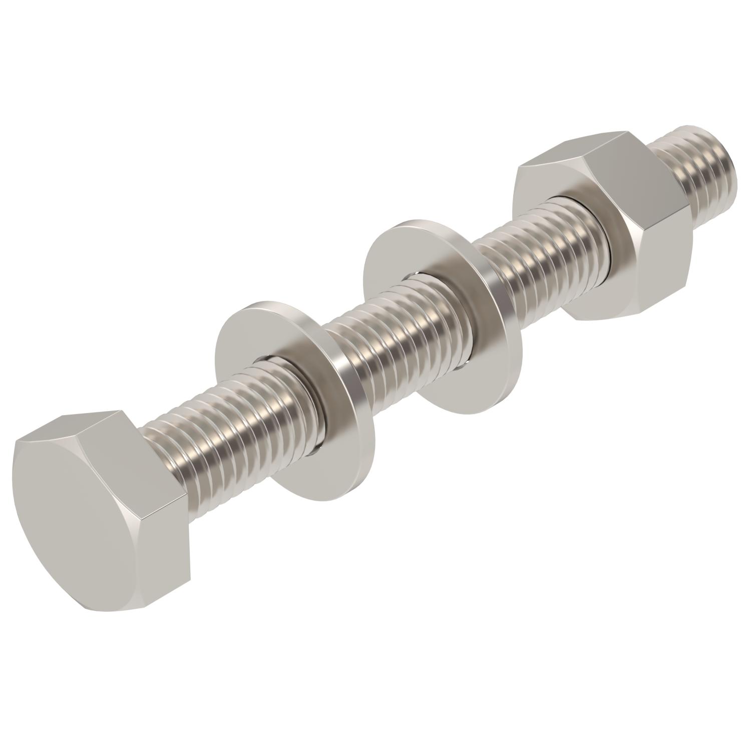 ProductbeschrijvingZeskantbout voor de universele bevestiging van metalen delen. Inclusief zeskantmoer en 2 sluitringen.