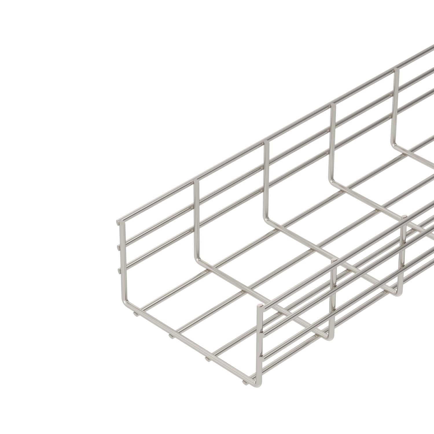 ProductbeschrijvingDraadgoot in C-vorm van gepuntlaste staaldraden met een hoogte van 105 mm.