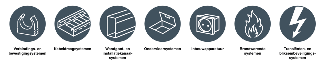 Van kabelmanagement tot beveiligingssystemen; je vindt direct de juiste technische info en artikelnummers voor een snelle werkvoorbereiding en bestelling.